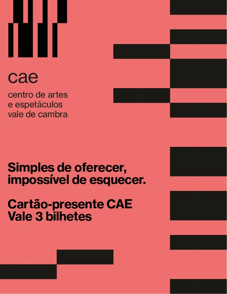 - Válido para troca por bilhetes apenas para espetáculos promovidos pelo CAE Vale de Cambra. *A lista de espetáculos elegíveis é divulgada no início de cada temporada através dos canais digitais do CAE (website, newsletter e redes sociais).